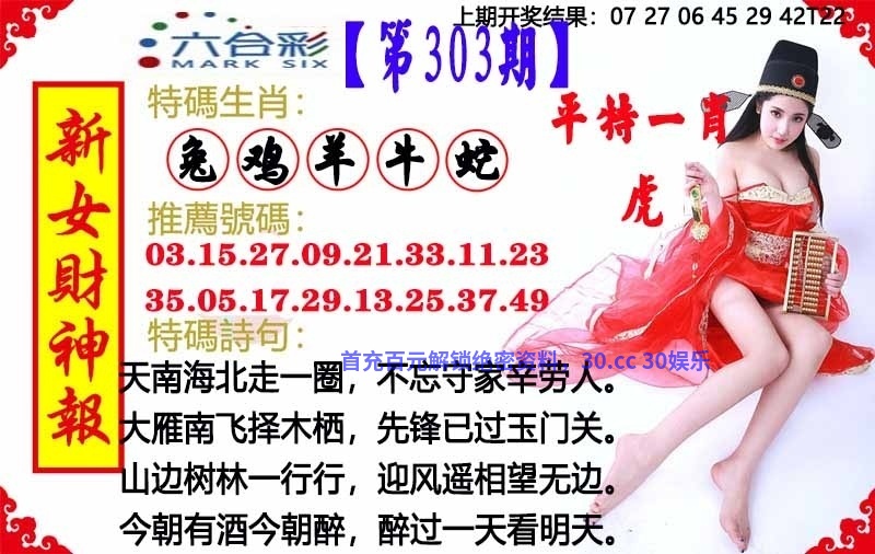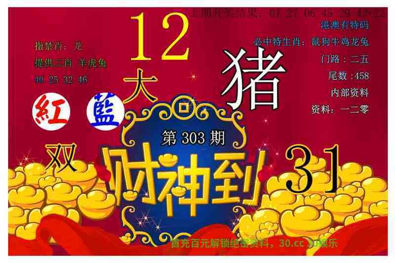| 303期:⑦肖 | 猪鼠龙鸡蛇狗兔 | 开:兔15中 |